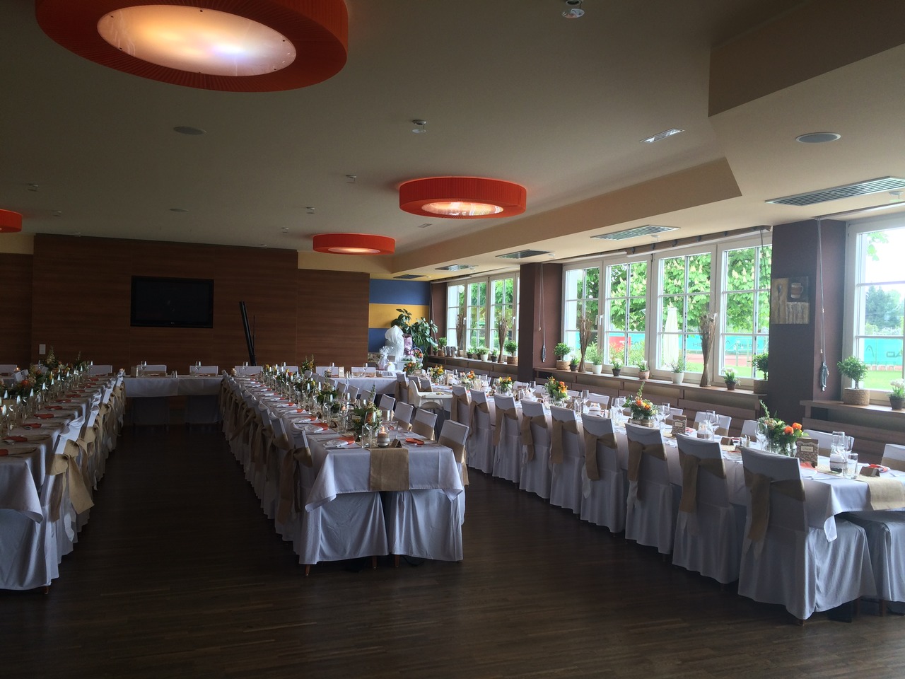 Ob serviert oder in Form eines reichhaltigen Buffets - uns sind keine Grenzen gesetzt. Sie können die Form und Anordnungen der Sitze und Tische frei wählen.